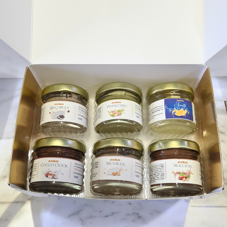 La Box con 7 creme spalmabili di diversi formati in confezione risparmio è un'ottima occasione per provare le creme che ti attirano di più o per avere sempre a disposizione una piccola scorta in dispensa. La scatola da viaggio contiene :
