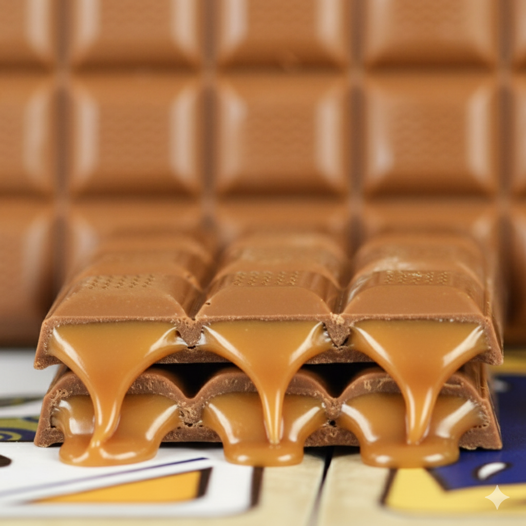 Tavoletta al Latte ripiena di crema al Caramello salato 120 gr ha uno strato sottile di crema all'interno per garantire la perfetta combinazione tra la dolcezza del cioccolato al latte e quella della crema al Caramello salato, con grani di fior di sale per i palati più esigenti