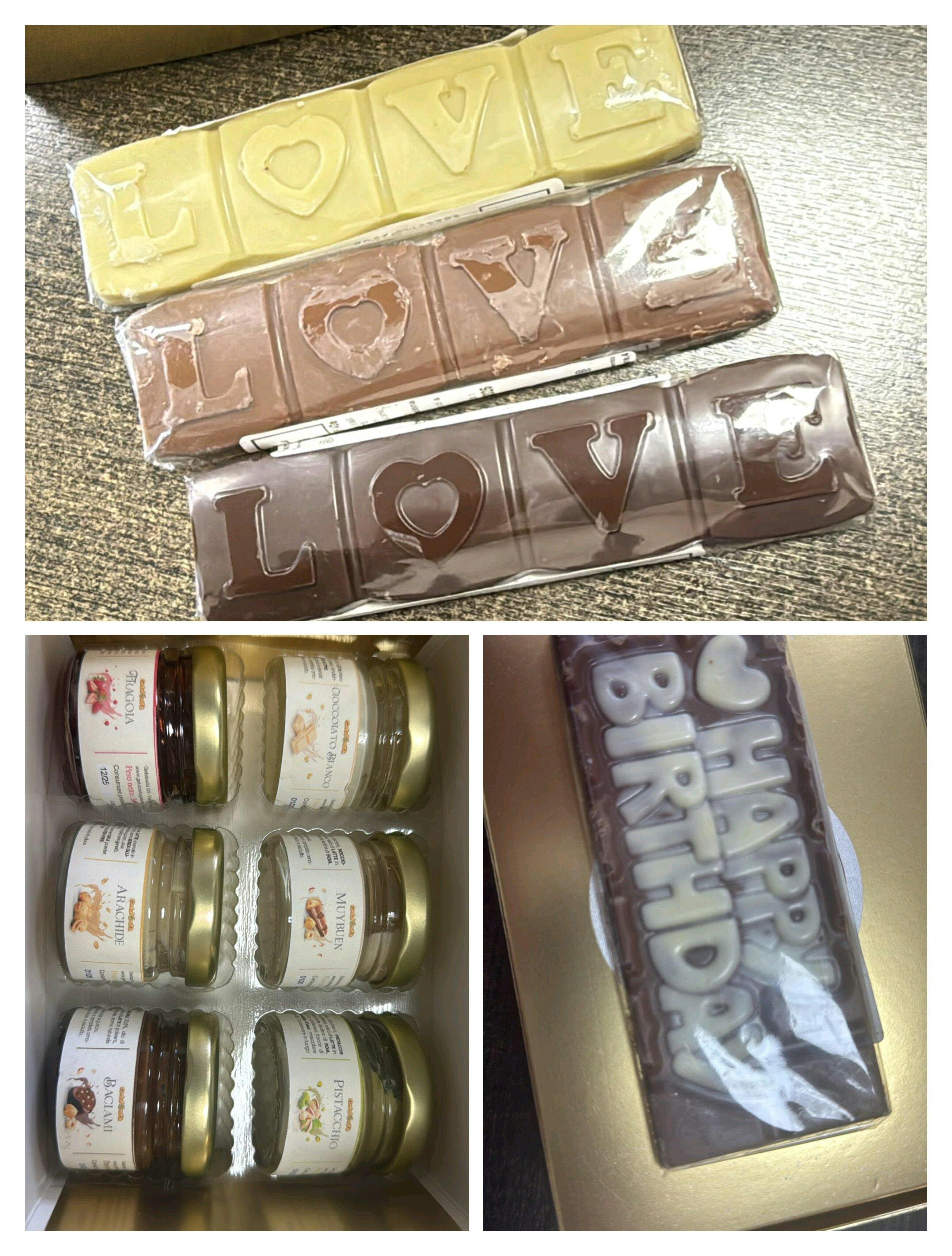 Confezione stupenda e marmellatine e barrette di cioccolato stupende e buonissime…come sempre ovviamente